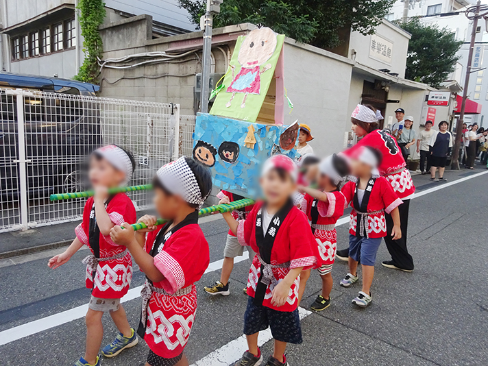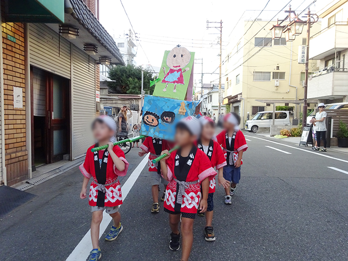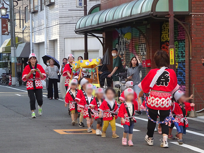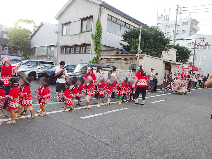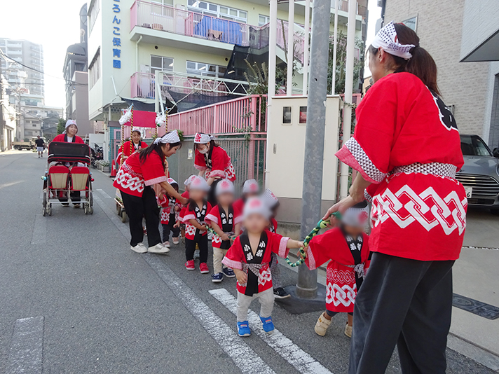 夕方、各クラスが作った「だんじり」をひっぱりました。